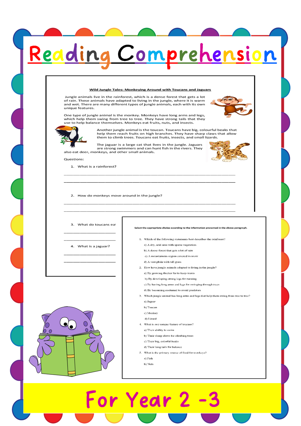 Amazing Reading Comprehension For year 2-3 on Jungle animals